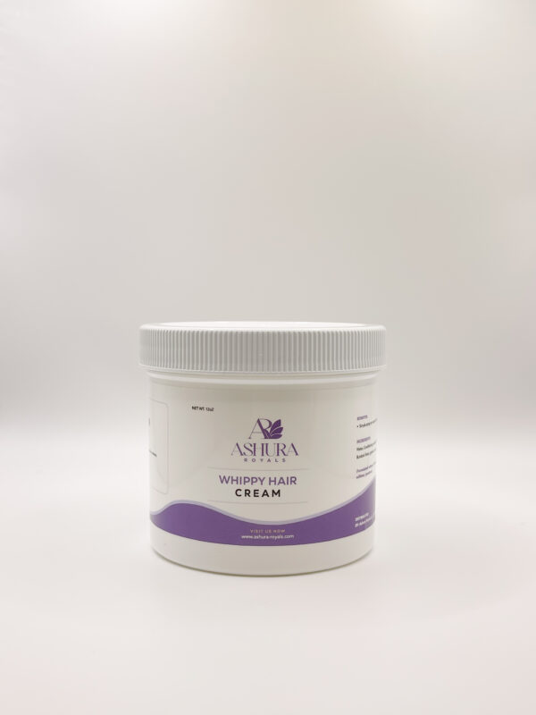 - Our Whippy Hair Cream is exclusively formulated to nourish all hair types, providing your hair with the daily moisture that leaves each hair strand healthy and shining. Ashura Royals Whippy Hair Cream is loaded with authentic hair loving ingredients that aids in treatment of common scalp issues such as extreme dryness, loss of hair, itchy scalp and more. Uniquely formulated to detangle hair while repairing and preventing breakage by strengthening hair elasticity. Say goodbye to split ends and dry brittle hair forever!